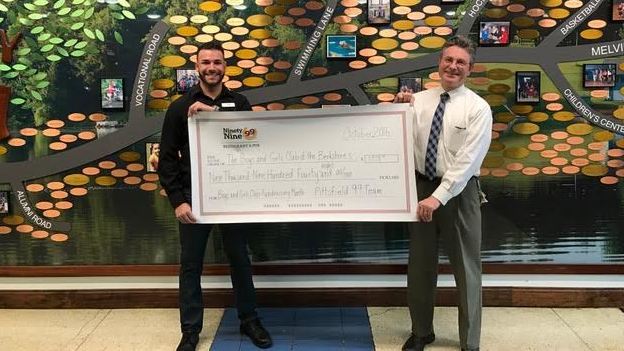 Ninety-nine hundred thank yous: The Boys & Girls Club of the Berkshires has received a $9,948 donation from the Pittsfield Ninety Nine Restaurant as part of the restaurant chain's annual October fund raising efforts on behalf of local Boys & Girls Clubs. The amount raised by the Pittsfield Ninety Nine, located at 699 Merrill Road, was the eighth highest of the 106 Ninety Nine stores participating in fundraising efforts for their local Boys & Girls Clubs.