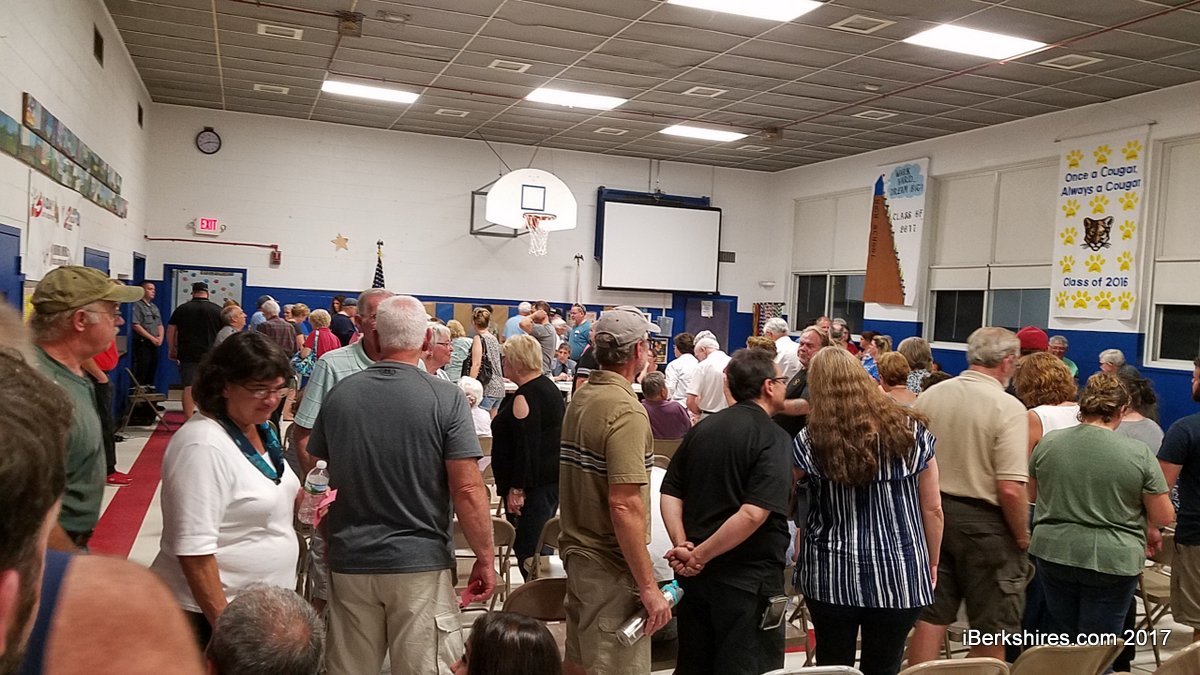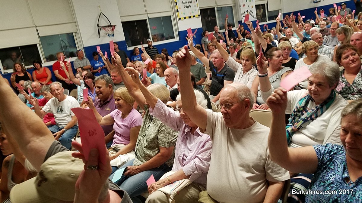 Town officials had been expecting a heavy turnout but not one that doubled the capacity of the undersized gymnasium. The decision had been made ahead to vote by secret ballot as a way to contain the process. An attempt to change that on the floor to a hand vote failed.