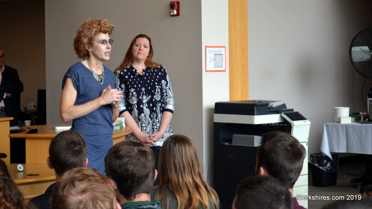 Leslie Parady of MassMEP presented manufacturing certificates to McCann Technical students on Thursday with Wendy Storm, right, MACWIC vocational coordinator at MassMEP.