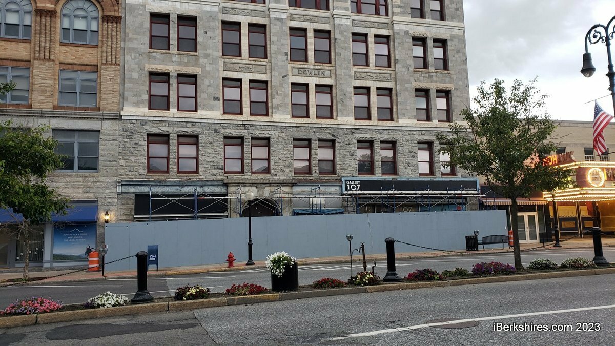 NORTH ADAMS, Mass. — A protective barrier was put up around the front of the Dowlin Block on Monday morning, signaling that some work may be in store for the 1895 structure.