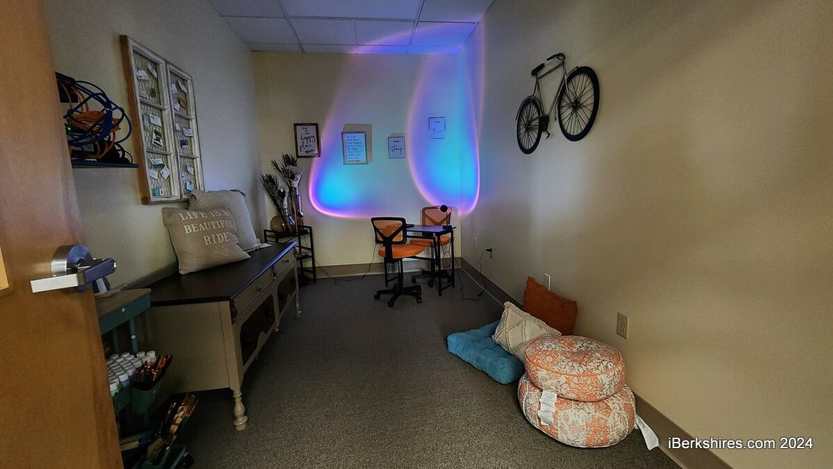 The center, on the second floor of the Berkshire Plaza (accessed by the side door) is painted a soothing green with inspirational posters on the walls. The large gathering area has plump couches and chairs for more intimate discussions as well as room for group meetings. Two smaller rooms offer space for one-on-one or meditative sessions, to play ping pong or use a computer. There's also a dining area and kitchen and administrative offices.
