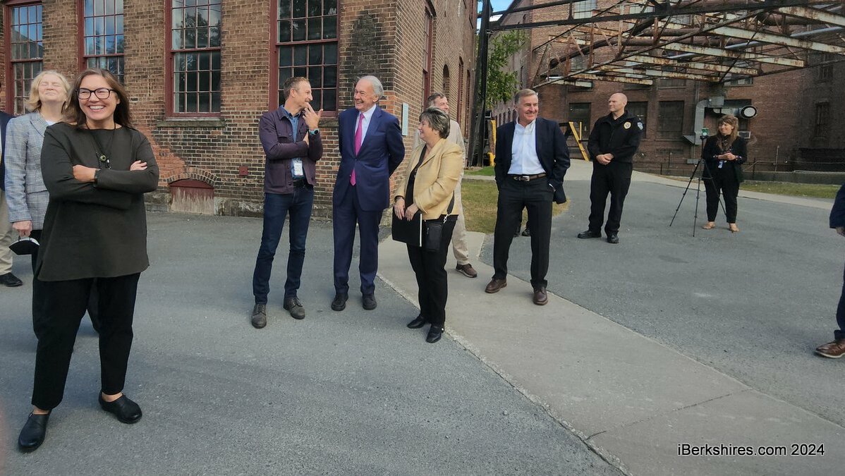 U.S. Sen. Edward Markey gets an overview of the Mass MoCA campus with Mayor Jennifer Macksey, right, MoCA board members Ben Svenson and Steve Jenks, senior adviser Paige Bartels and Andy Schlatter, director of facilities on Thursday.
