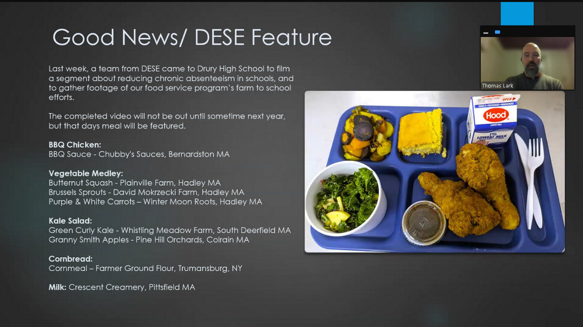 Food Service Director Thomas Lark, in a presentation to the School Committee on Tuesday, said the district is in line for grant funding, but he couldn't release details just yet.