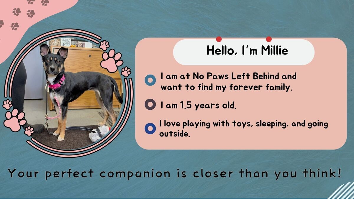 If you think Millie is your next best friend, you can contact the shelter or learn more on the website.