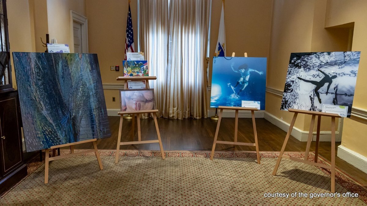 Works by three Berkshire artists — Adam Brown of Lenox, Sarah Sutro of North Adams and Shelsy Rodriguez of Pittsfield — are on display outside the governor's office until Sept. 12.